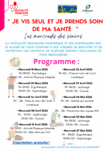 Face à ces constats, la Mutualité Française Martinique propose un programme d’ateliers visant à promouvoir le bien-être physique, mental et social des seniors vivant seuls. Cette action s’inscrit dans une approche globale inspirée du concept « One Health », qui reconnaît les liens entre la santé humaine, sociale et environnementale.