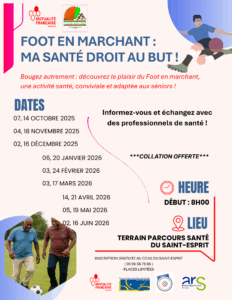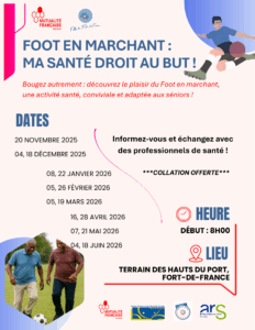 Dans ce contexte, la Mutualité Française Martinique propose un projet original associant activité physique, prévention santé et lien social autour du Foot en marchant. Cette pratique sportive, adaptée aux seniors, permet de pratiquer une activité physique modérée, sécurisée et conviviale, tout en favorisant l’endurance, l’équilibre, la mobilité et le bien-être général. En plus de ses bénéfices physiques, elle contribue à renforcer l’estime de soi, à réduire l’isolement et à créer une dynamique collective.